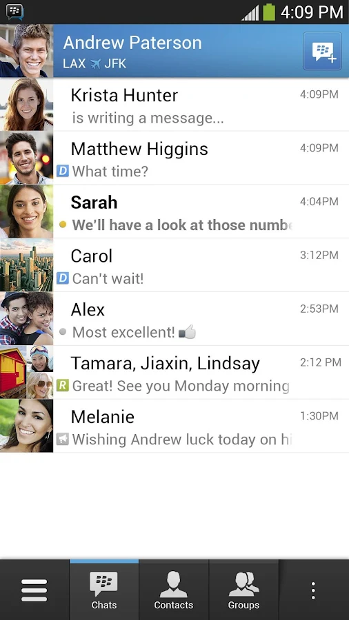 - Grup – Grup BBM membantu Anda berbagi foto, daftar, dan janji temu dengan anggota grup. Anda bahkan dapat berada di satu grup dengan orang yang tidak ada di daftar kontak BBM Anda.