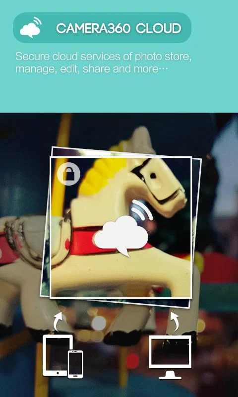 - Camera360 Cloud yang menyediakan platform yang aman dan pribadi bagi Anda untuk menelusuri, mengelola, mengedit, dan berbagi foto yang paling favorit mobile Anda (mendukung 2000 px foto upload)