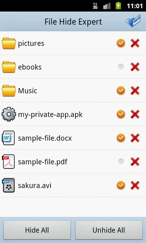 - Bersih, halus dan intuitif UI untuk membantu Anda dengan mudah menyembunyikan file dan folder.